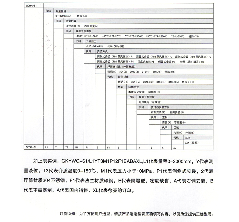 GKYWG-61型電動浮筒液位計是采用了國外技術(shù)及零部件而研制組裝的新型液位測量儀表,該儀表搭載了先端微型計算機系統(tǒng),除了具有高準確度、低漂移等優(yōu)點外,還可對測量過程的溫度和密度進行自動補償,同時可調(diào)整量程范圍適合多種工況的液位界位測量。本產(chǎn)品具有防爆性,結(jié)構(gòu)簡單、性能穩(wěn)定、安裝方便。可廣泛用于石油、化工、冶金、電力及鋼鐵行業(yè)。GKYWG-61型電動浮筒液位計可用來測量液位、界位和密度,不但能輸出4-20mA的標準電流信號也能利用HART通訊協(xié)議隨時存取,對過程操作當中用戶所需要的信息又可在傳輸線的任意一點對其進行調(diào)校。